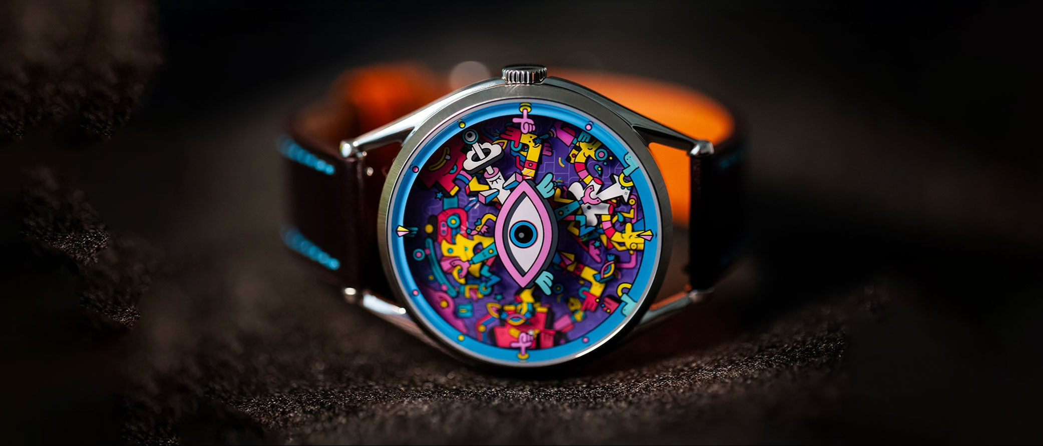 The two main time-tellers have the important job of conveying their information to the viewer, but everyone, and everything all play their part in conjuring a chaotic and colourful design at every minute of the day (meanwhile the all seeing eye is keeping track of every second...!)”