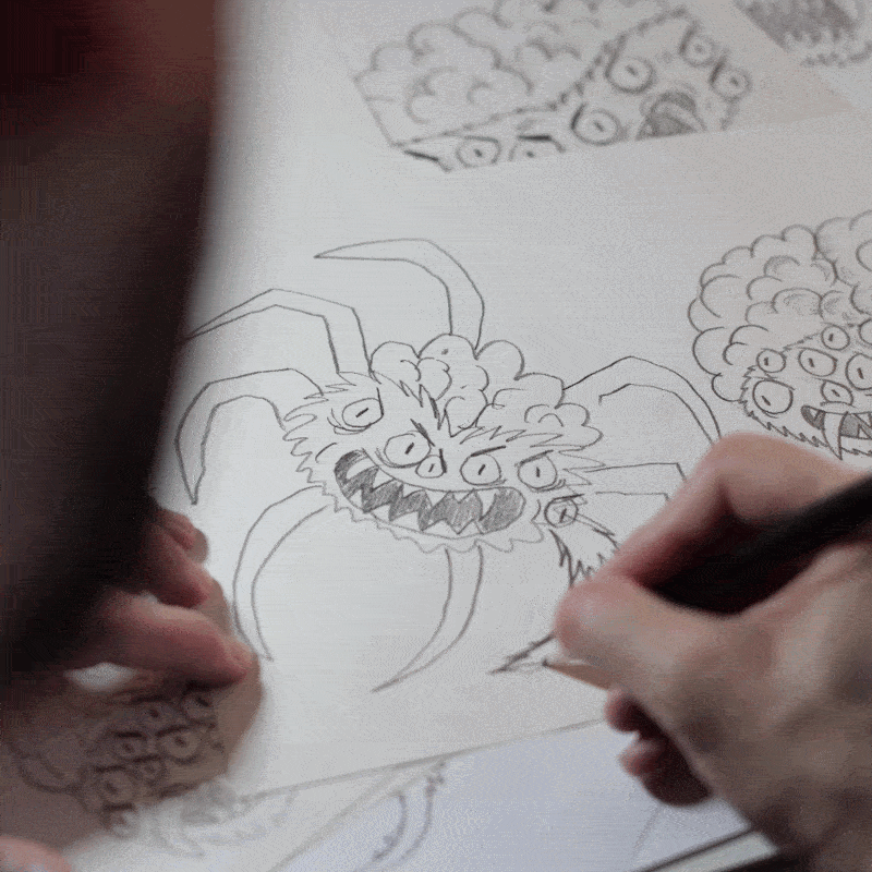 “After I designed Monster Melter 3000 I didn’t have any future plans for the design, but I found myself doodling other monster characters that the little space guy could be fighting.