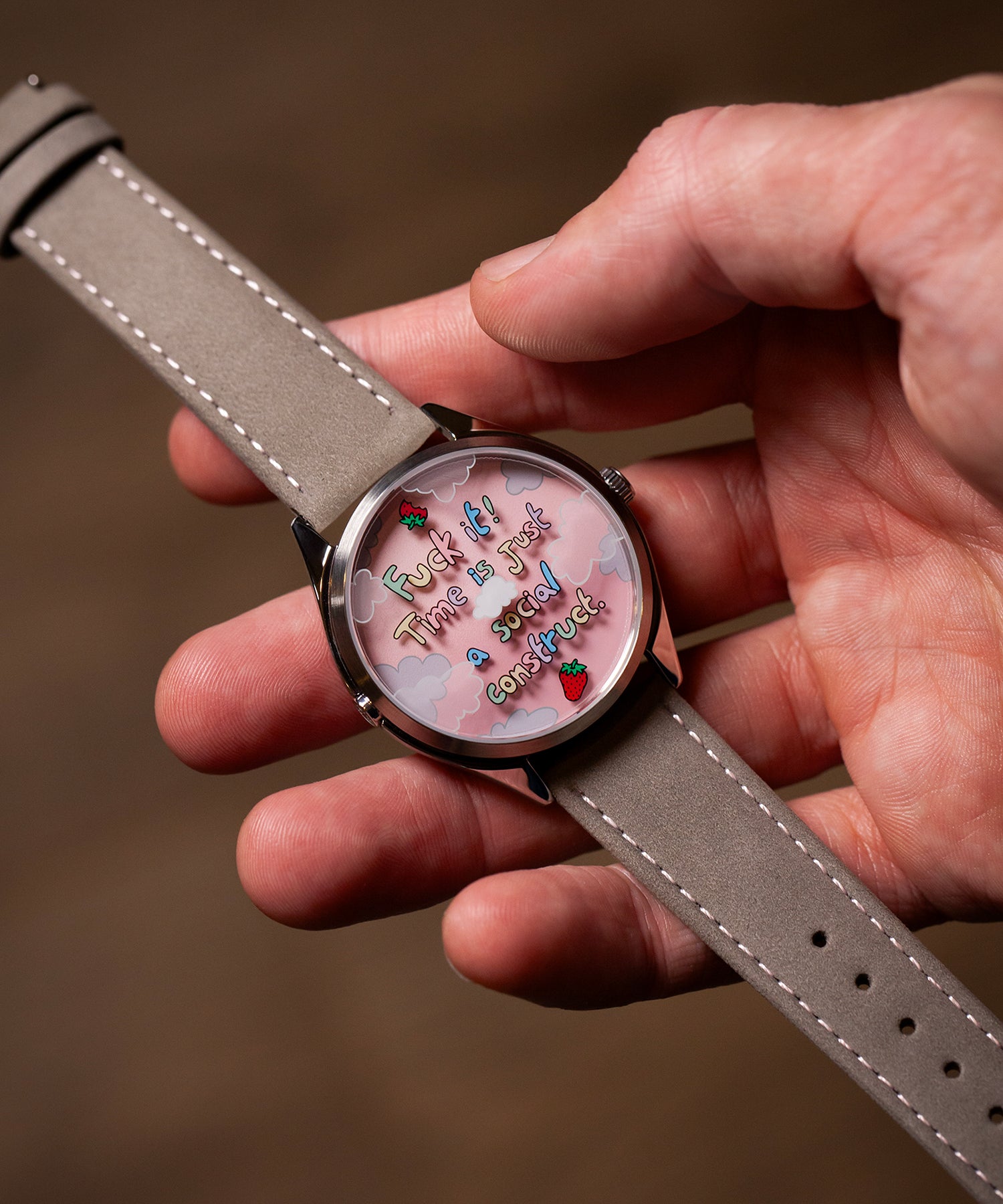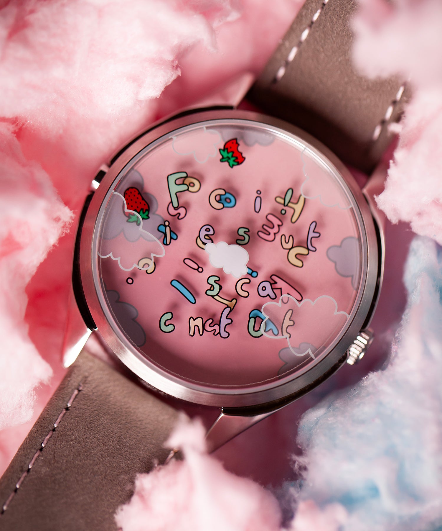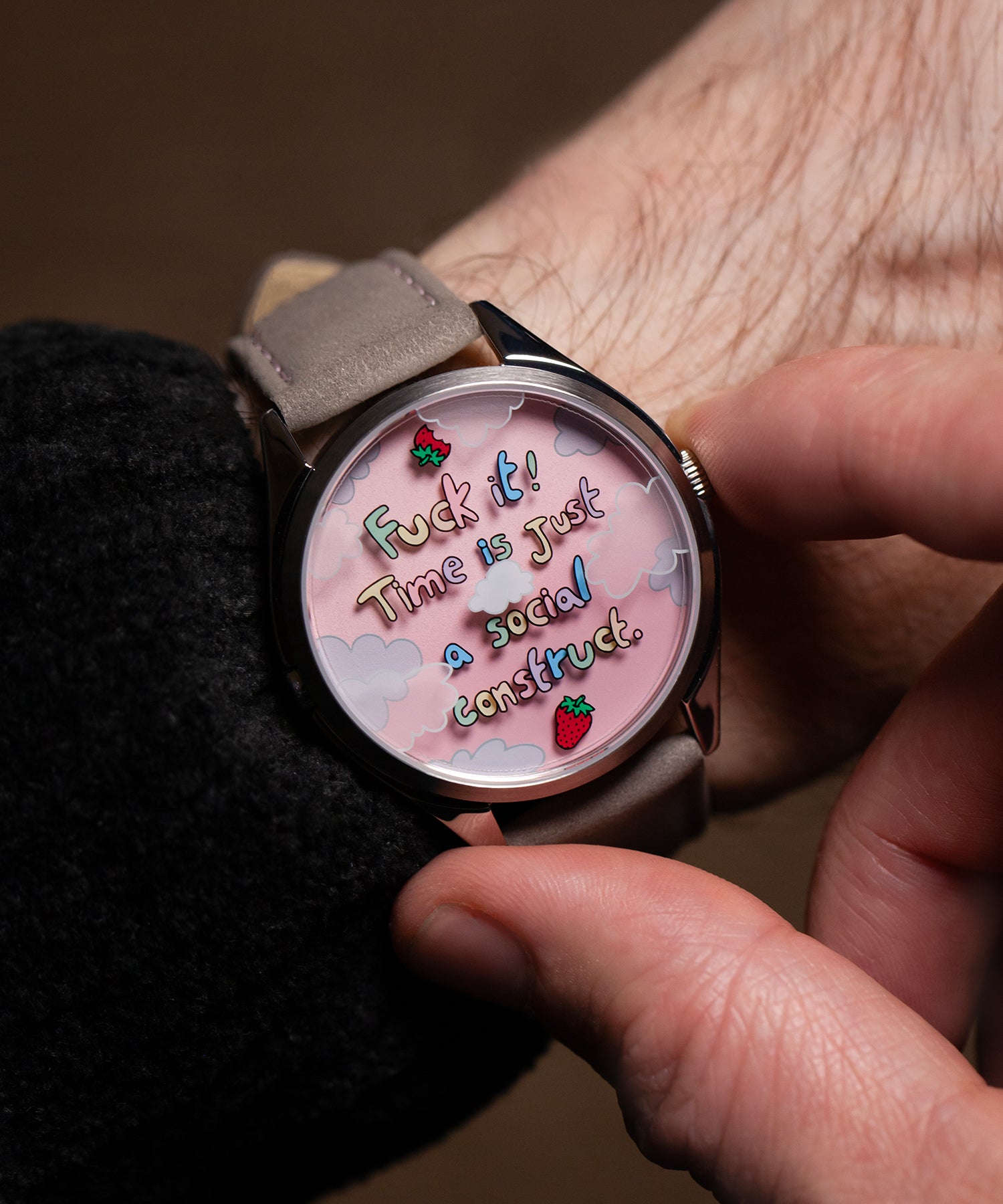 "The watch combines my love of writing and playing with words coupled with a sense of irony and the absurd.