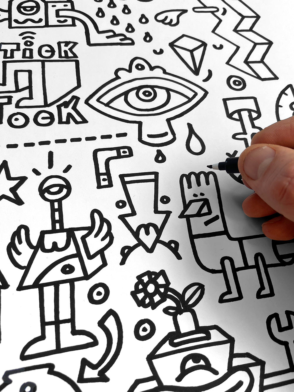 Mister Phil’s fun-filled images add life to brands, clothing and large-scale installations. All of his work starts as a pen drawing before it’s vectorised and coloured digitally.