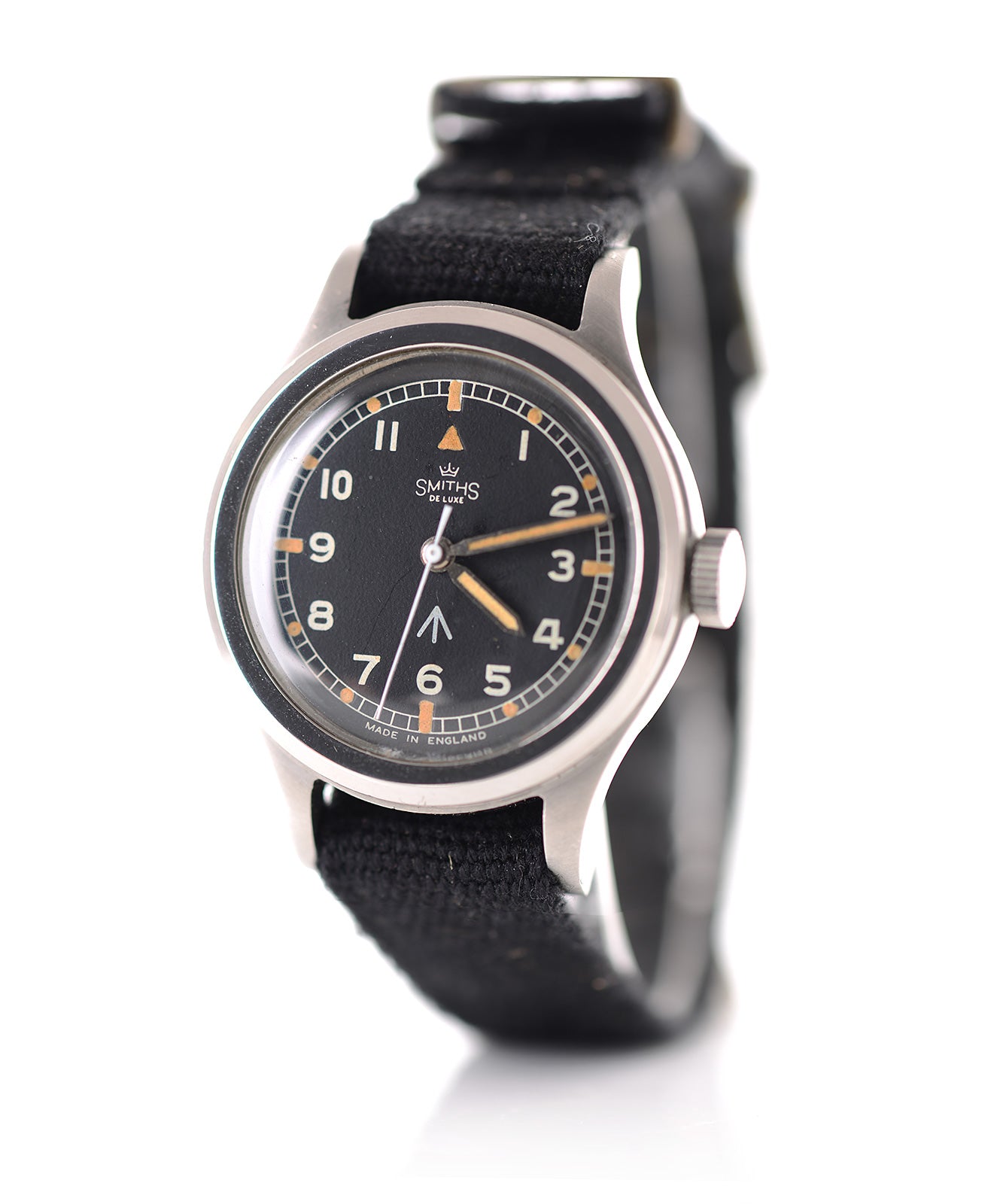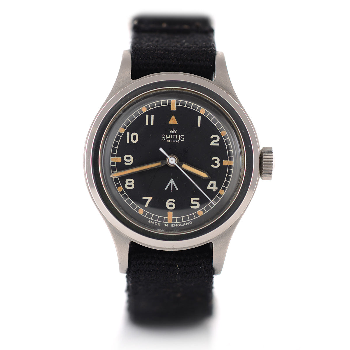 This is a Smiths General Service (GS) wristwatch which was issued in 1961. This is the rarest Smiths military watch since this is part of the small batch that were produced for the Australian military in 1961. The overall production number isn't know, but there are approximately 20 known examples that have surfaced and the number spread runs from 155 to 556. Assuming 3 digit numbers were used this would possibly indicate an order of 500 pieces.