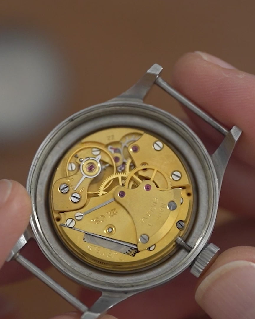 These watches are very similar to the Smiths 6b/542 watches produced for RAF pilots and navigators. There is a small difference in that the movement on the Australian issue watches also hacks, allowing time setting to the second. The balance spring on the watch has a Breguet overcoil, something Smiths very rarely produced, which helps with precise timekeeping across different positions.
