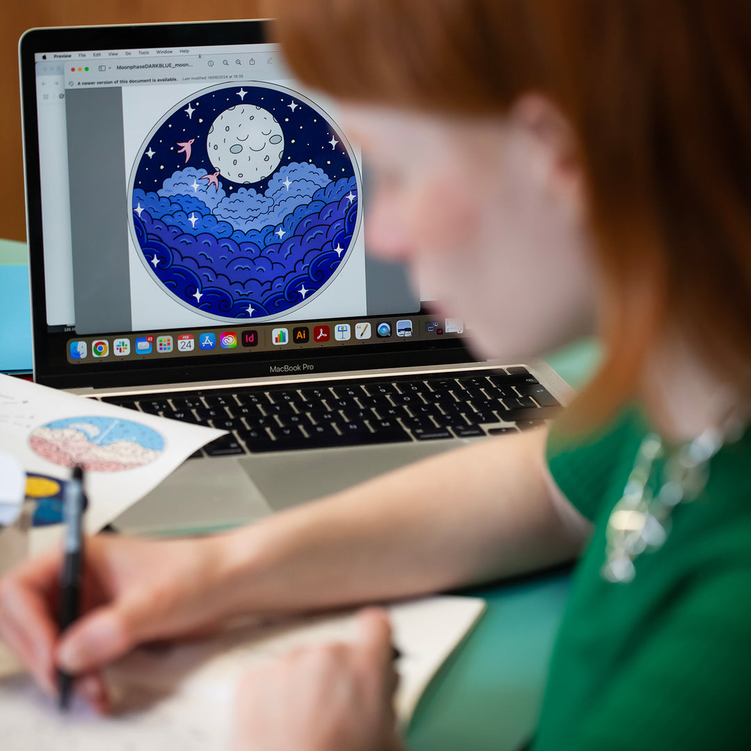 “My design celebrates the beauty of the night sky in a playful way. I was inspired by the magical feeling of sitting outside to watch the sunset, and staying there till day transitions into night.
