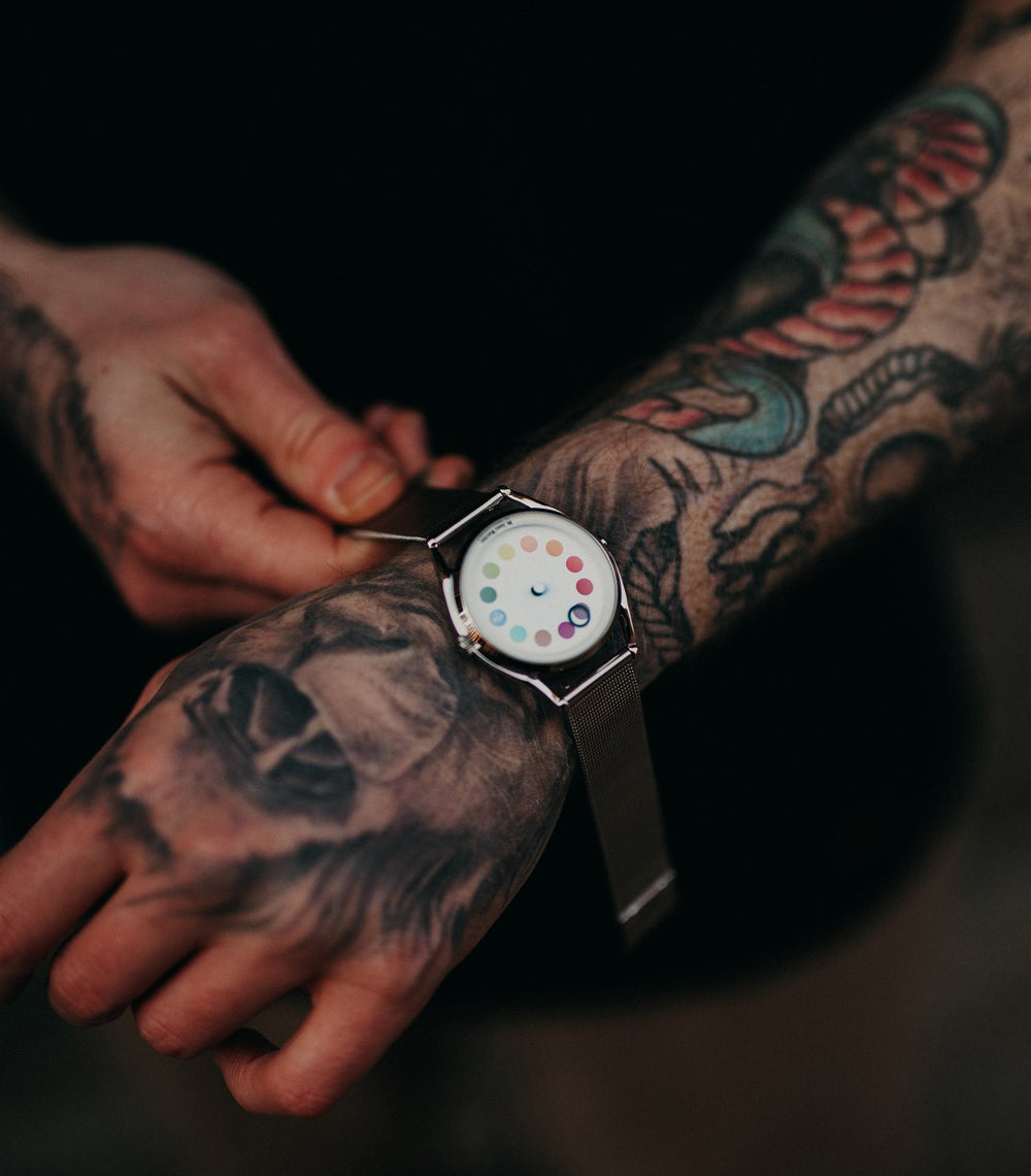 Instead of the conventional hour and minute hands, Cyclops has a single circle to mark the time.