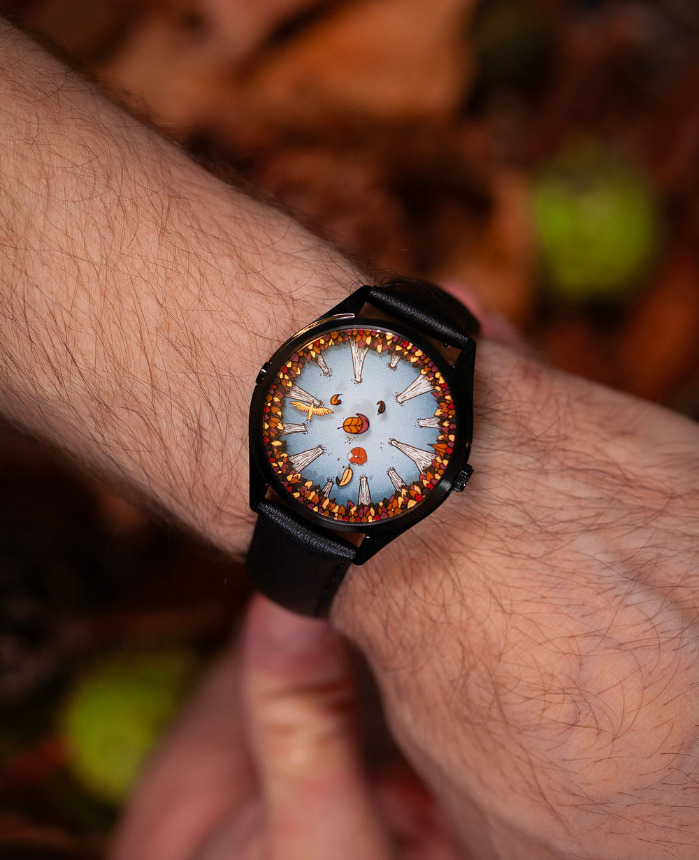 This watch wants to be a kind reminder to put your worries aside, you are here and now, so you might as well enjoy the ride."