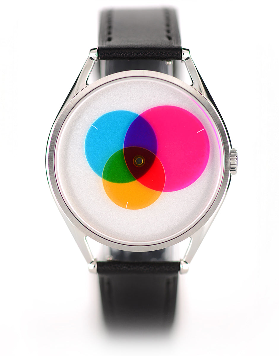The minute and seconds hands work in the usual way, subtle design cues within the artwork act as markers for reading the position of the hands.